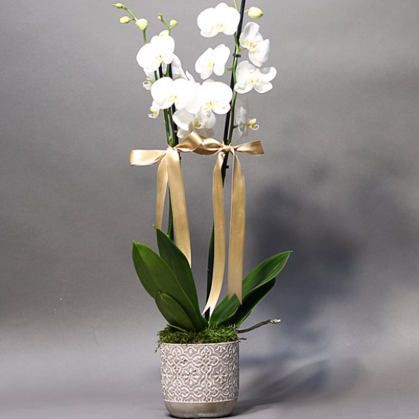 Beton Saksıda 2 Dal Beyaz Orkide