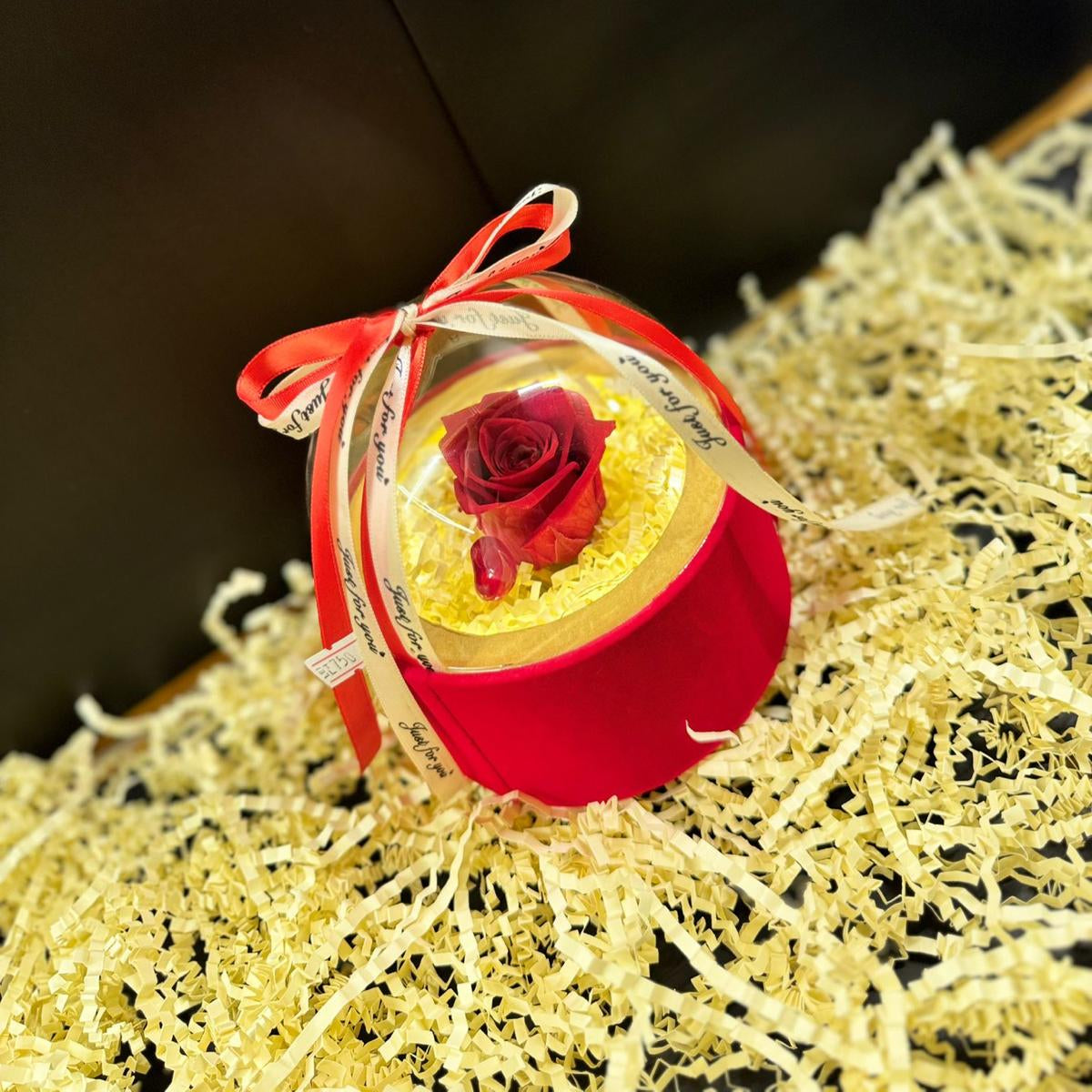 Kırmızı Kadife Kutuda Kırmızı Solmayan Gül
